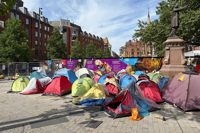 The rough sleeping encampment beneath the town hall is a symptom of the city’s specific challenge housing asylum seekers. Asylum seekers are housed in accommodation procured by Serco, a private company, on behalf of the Home Office. If an asylum seeker is given leave to remain, they have 28 days to leave their Serco accommodation and find a new home. In 2023 the previous government started granting asylum en masse, which evicted large numbers of asylum seekers from their Serco accommodation with only a week’s notice, placing huge pressure on the council.